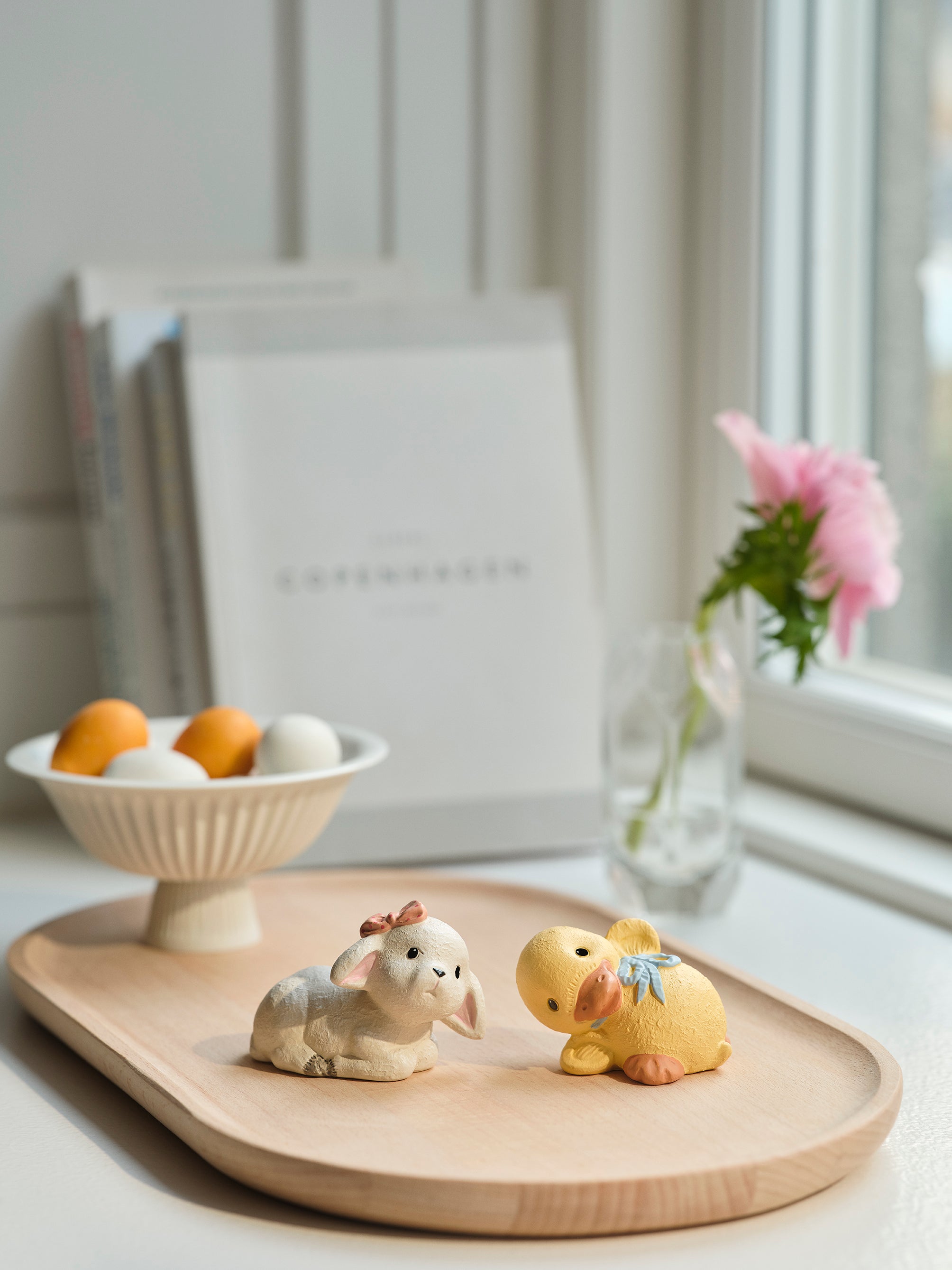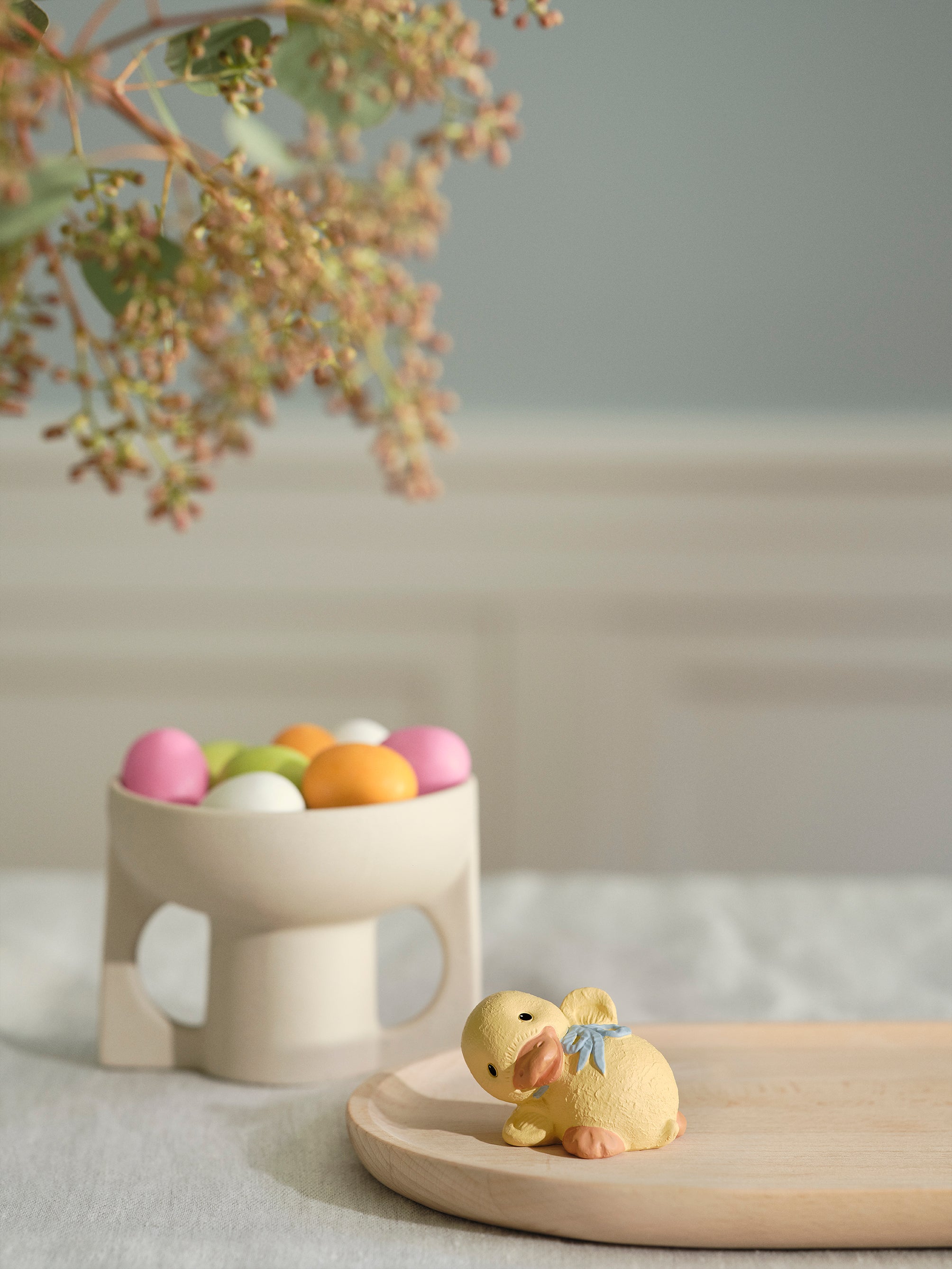 Etter den mørke, men hyggelige tiden, gleder vi oss til våren og de lyse tidene, når snøklokker, perlehyasinter og påskeliljer i vakre vårfarger bobler opp fra bakken. Våren er også tiden da de små vårlammene, kyllingene, andungene og harene blir født. Alle små deilige ullete, dunete og myke små kravler, som er tegn på at våren har kommet. Det gir deg lyst til å bringe våren inn. Plukk vakre vårgrener og heng de små søte og kosete vårdyreungene mine på dem, så er våren i luften. Vårhilsen fra Etly Klarborg.